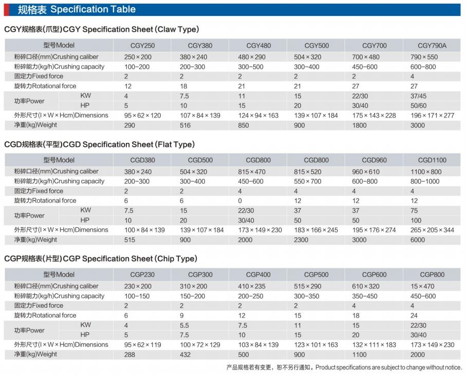cG-Y-D-P系列粉碎機(jī),分為爪型破碎機(jī)系列,平型破碎機(jī)系列,片型破碎機(jī)系列。以上機(jī)型適用面廣,供各類塑料制品,粉碎回收利用。